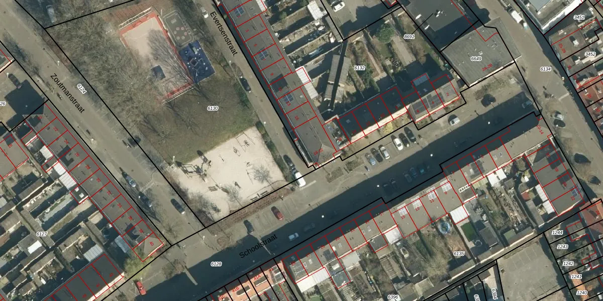 Schoolstraat 20 is gelegen op kadastraal perceel WSL01G6132. Deze kadastrale aanduiding is uniek en wordt gebruikt door het Kadaster om eigendomsrechten en andere zakelijke rechten vast te leggen. Het perceel maakt onderdeel uit van de kadastrale gemeente Woensel.