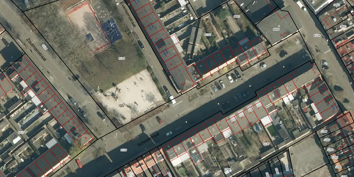 Schoolstraat 22 is gelegen op kadastraal perceel WSL01G6132. Deze kadastrale aanduiding is uniek en wordt gebruikt door het Kadaster om eigendomsrechten en andere zakelijke rechten vast te leggen. Het perceel maakt onderdeel uit van de kadastrale gemeente Woensel.