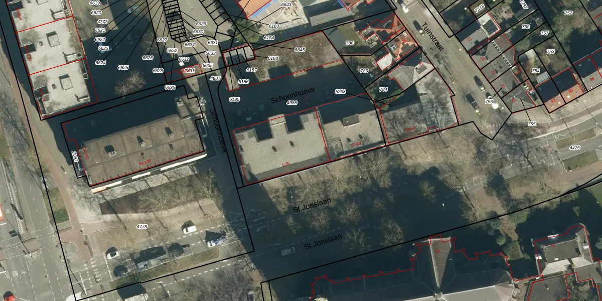 Schoonhoeve 21 is gelegen op kadastraal perceel STM00E4986. Deze kadastrale aanduiding is uniek en wordt gebruikt door het Kadaster om eigendomsrechten en andere zakelijke rechten vast te leggen. Het perceel maakt onderdeel uit van de kadastrale gemeente Stratum.