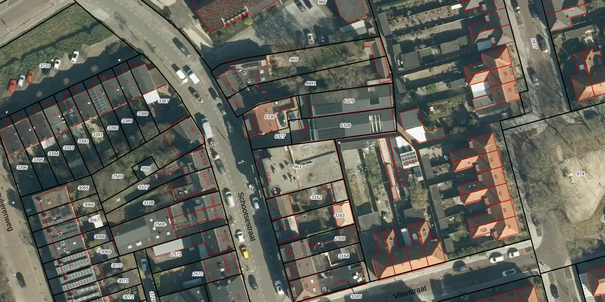 Schootsestraat 57-B is gelegen op kadastraal perceel STR03C963. Deze kadastrale aanduiding is uniek en wordt gebruikt door het Kadaster om eigendomsrechten en andere zakelijke rechten vast te leggen. Het perceel maakt onderdeel uit van de kadastrale gemeente Strijp.