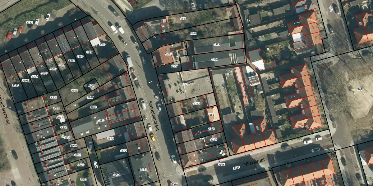 Het perceel waarop Schootsestraat 57-F staat heeft een oppervlakte van 412 m². Dit is een groot perceel. De perceeloppervlakte wordt geregistreerd door het Kadaster. Gedetailleerde informatie over de maten van dit perceel kunt u vinden in het rapport Kadastrale kaart met maatvoering van Schootsestraat 57-F.