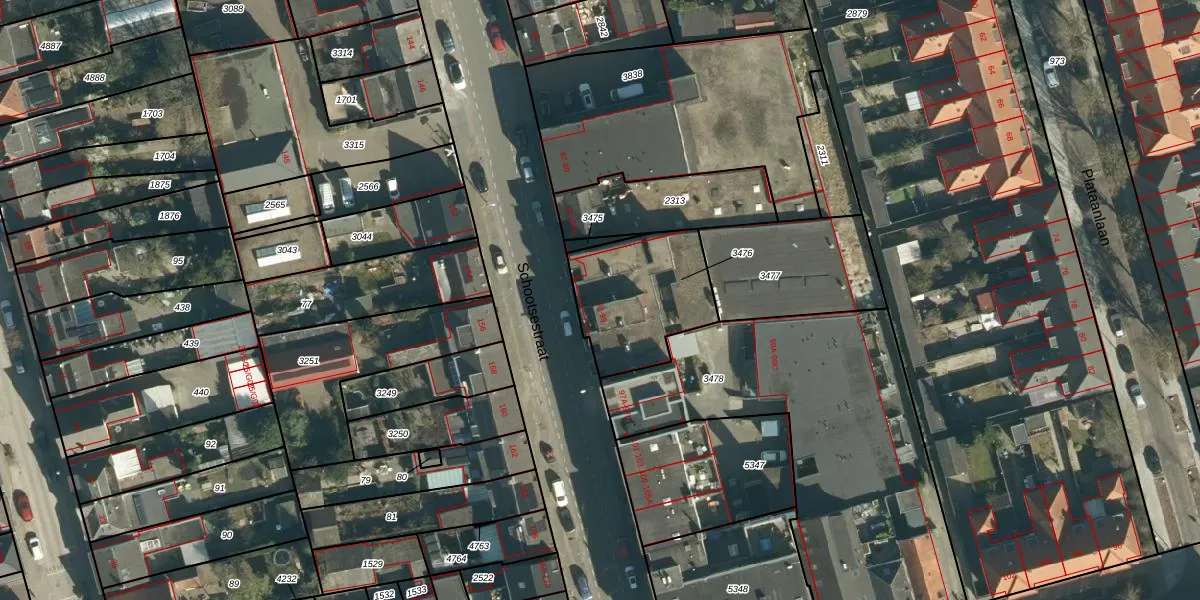 Het perceel waarop Schootsestraat 93 staat heeft een oppervlakte van 430 m². Dit is een groot perceel. De perceeloppervlakte wordt geregistreerd door het Kadaster. Gedetailleerde informatie over de maten van dit perceel kunt u vinden in het rapport Kadastrale kaart met maatvoering van Schootsestraat 93.