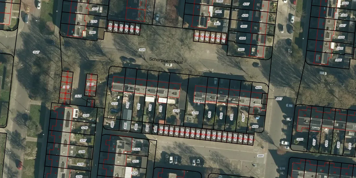 Gebruik de zoekbalk of klik op een perceel voor informatie over de adressen binnen dit perceel.