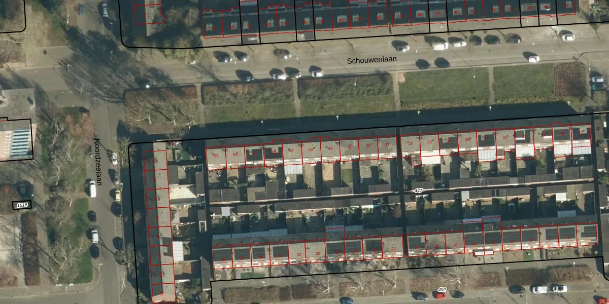 Schouwenlaan 45 is gelegen op kadastraal perceel WSL01R447. Deze kadastrale aanduiding is uniek en wordt gebruikt door het Kadaster om eigendomsrechten en andere zakelijke rechten vast te leggen. Het perceel maakt onderdeel uit van de kadastrale gemeente Woensel.