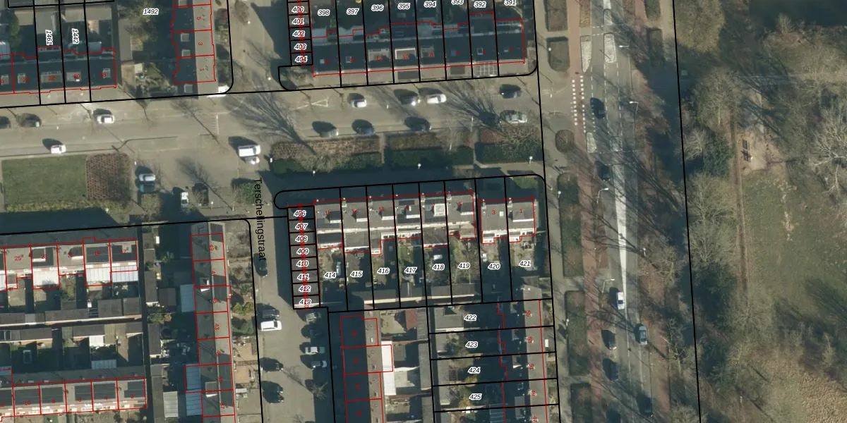 Schouwenlaan 7 is gelegen op kadastraal perceel WSL01R418. Deze kadastrale aanduiding is uniek en wordt gebruikt door het Kadaster om eigendomsrechten en andere zakelijke rechten vast te leggen. Het perceel maakt onderdeel uit van de kadastrale gemeente Woensel.