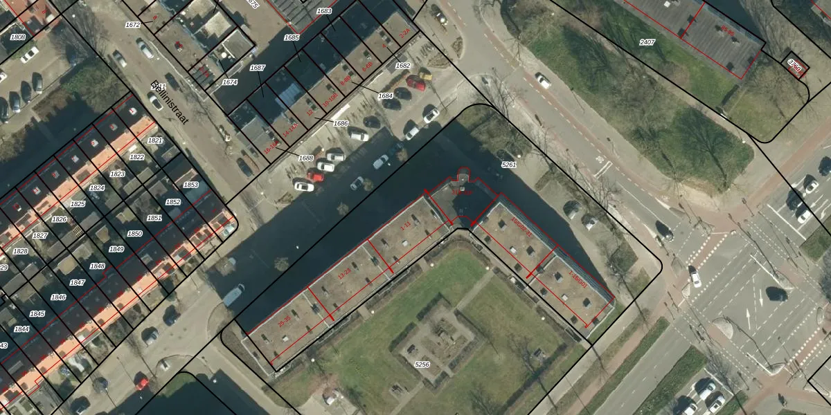 Het perceel waarop Schubertlaan 1 staat heeft een oppervlakte van 2631 m². Dit is een zeer groot perceel. De perceeloppervlakte wordt geregistreerd door het Kadaster. Gedetailleerde informatie over de maten van dit perceel kunt u vinden in het rapport Kadastrale kaart met maatvoering van Schubertlaan 1.