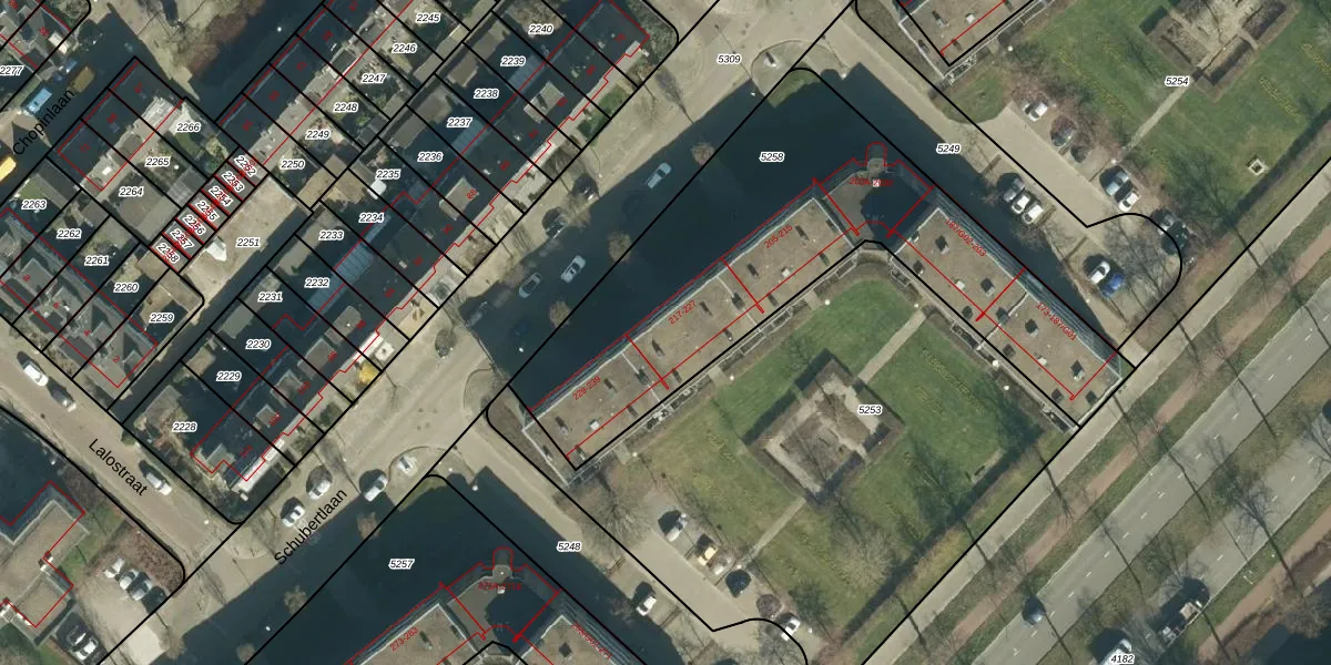 Het perceel waarop Schubertlaan 223 staat heeft een oppervlakte van 1995 m². Dit is een zeer groot perceel. De perceeloppervlakte wordt geregistreerd door het Kadaster. Gedetailleerde informatie over de maten van dit perceel kunt u vinden in het rapport Kadastrale kaart met maatvoering van Schubertlaan 223.