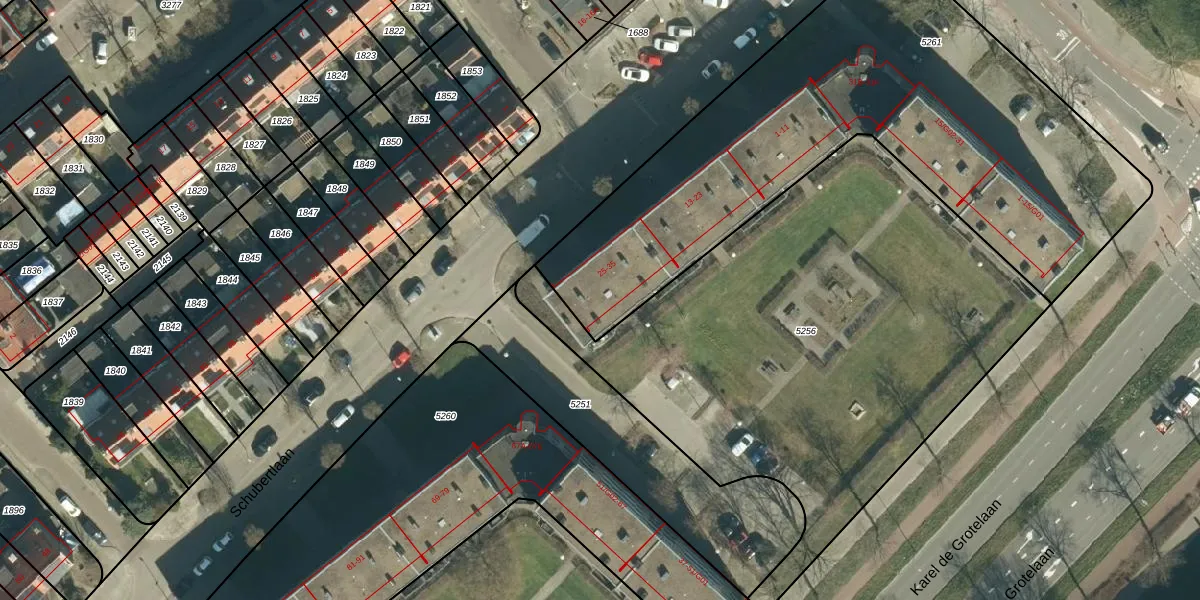 Het perceel waarop Schubertlaan 35 staat heeft een oppervlakte van 2631 m². Dit is een zeer groot perceel. De perceeloppervlakte wordt geregistreerd door het Kadaster. Gedetailleerde informatie over de maten van dit perceel kunt u vinden in het rapport Kadastrale kaart met maatvoering van Schubertlaan 35.