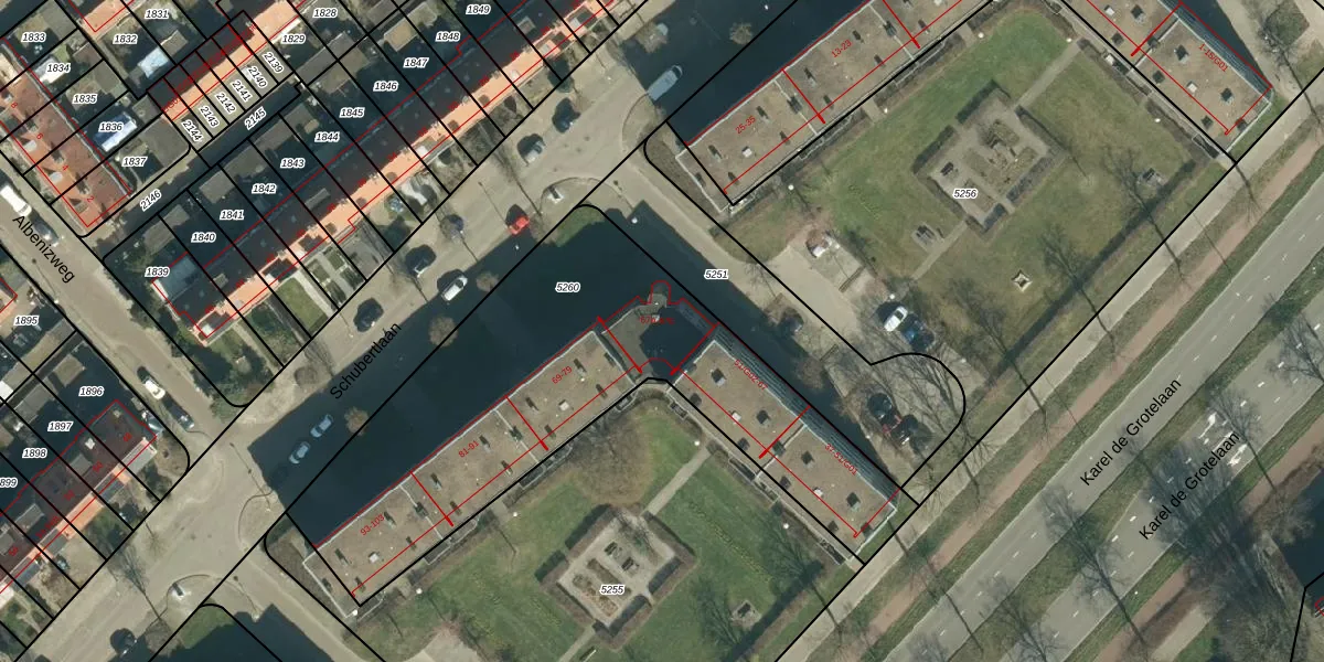 Het perceel waarop Schubertlaan 67-D staat heeft een oppervlakte van 2080 m². Dit is een zeer groot perceel. De perceeloppervlakte wordt geregistreerd door het Kadaster. Gedetailleerde informatie over de maten van dit perceel kunt u vinden in het rapport Kadastrale kaart met maatvoering van Schubertlaan 67-D.