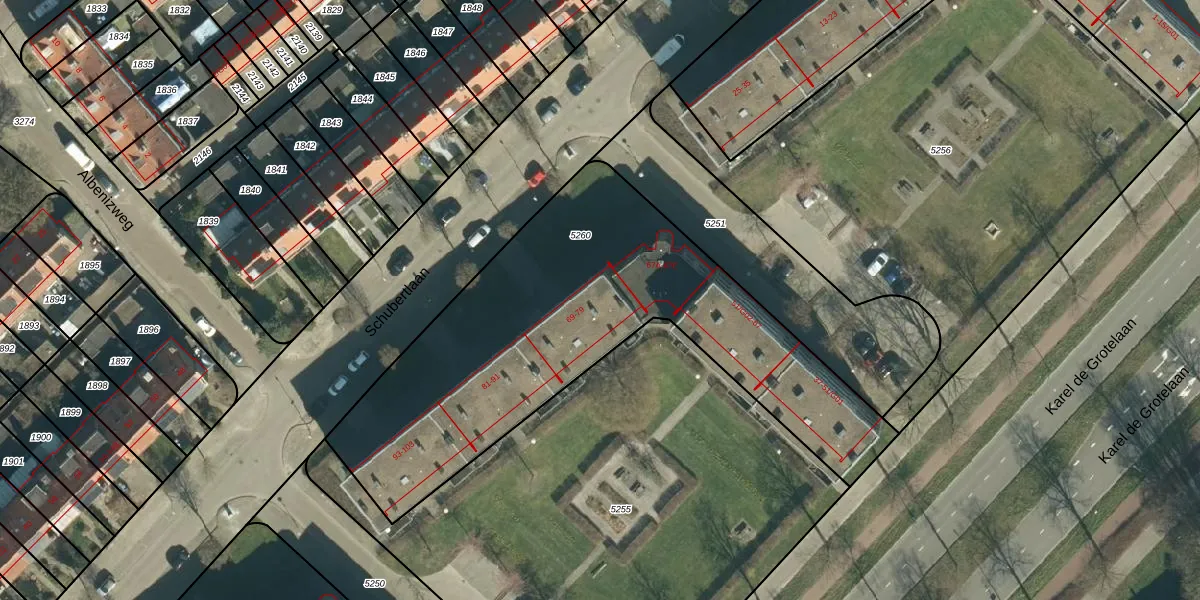 Het perceel waarop Schubertlaan 73 staat heeft een oppervlakte van 2080 m². Dit is een zeer groot perceel. De perceeloppervlakte wordt geregistreerd door het Kadaster. Gedetailleerde informatie over de maten van dit perceel kunt u vinden in het rapport Kadastrale kaart met maatvoering van Schubertlaan 73.