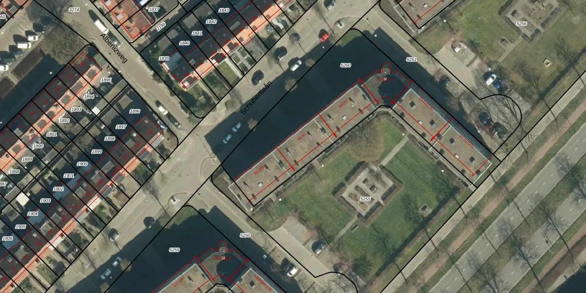 Het perceel waarop Schubertlaan 87 staat heeft een oppervlakte van 2080 m². Dit is een zeer groot perceel. De perceeloppervlakte wordt geregistreerd door het Kadaster. Gedetailleerde informatie over de maten van dit perceel kunt u vinden in het rapport Kadastrale kaart met maatvoering van Schubertlaan 87.