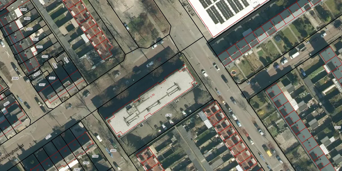 Schultinghstraat 1-B is gelegen op kadastraal perceel STR03C1763. Deze kadastrale aanduiding is uniek en wordt gebruikt door het Kadaster om eigendomsrechten en andere zakelijke rechten vast te leggen. Het perceel maakt onderdeel uit van de kadastrale gemeente Strijp.