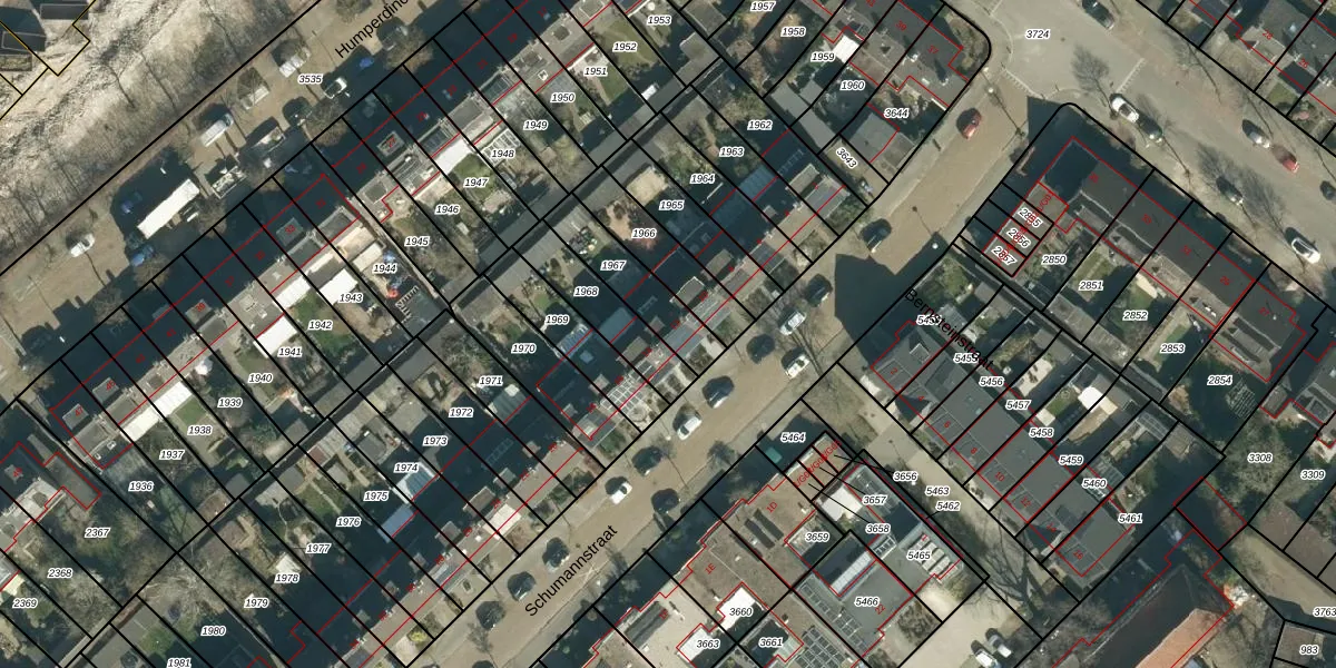 Het perceel waarop Schumannstraat 12 staat heeft een oppervlakte van 198 m². Dit is een middelgroot perceel. De perceeloppervlakte wordt geregistreerd door het Kadaster. Gedetailleerde informatie over de maten van dit perceel kunt u vinden in het rapport Kadastrale kaart met maatvoering van Schumannstraat 12.