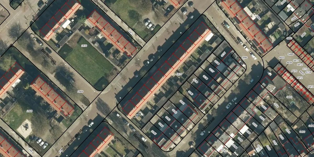 Het perceel waarop Schumannstraat 13 staat heeft een oppervlakte van 1735 m². Dit is een zeer groot perceel. De perceeloppervlakte wordt geregistreerd door het Kadaster. Gedetailleerde informatie over de maten van dit perceel kunt u vinden in het rapport Kadastrale kaart met maatvoering van Schumannstraat 13.