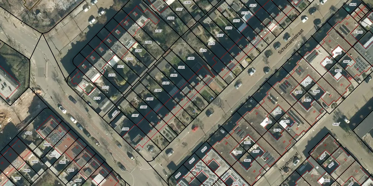 Het perceel waarop Schumannstraat 42 staat heeft een oppervlakte van 216 m². Dit is een middelgroot perceel. De perceeloppervlakte wordt geregistreerd door het Kadaster. Gedetailleerde informatie over de maten van dit perceel kunt u vinden in het rapport Kadastrale kaart met maatvoering van Schumannstraat 42.