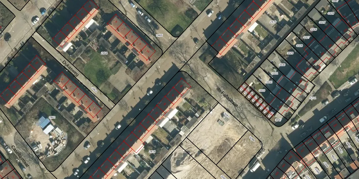 Het perceel waarop Schumannstraat 45 staat heeft een oppervlakte van 2596 m². Dit is een zeer groot perceel. De perceeloppervlakte wordt geregistreerd door het Kadaster. Gedetailleerde informatie over de maten van dit perceel kunt u vinden in het rapport Kadastrale kaart met maatvoering van Schumannstraat 45.
