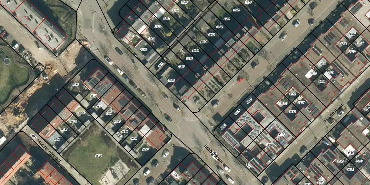 Gebruik de zoekbalk of klik op een perceel voor informatie over de adressen binnen dit perceel.