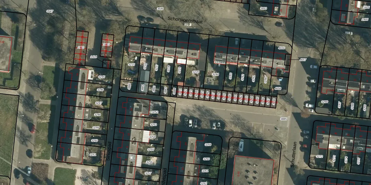 Schutterlaan 23-G02 is gelegen op kadastraal perceel WSL01C3222. Deze kadastrale aanduiding is uniek en wordt gebruikt door het Kadaster om eigendomsrechten en andere zakelijke rechten vast te leggen. Het perceel maakt onderdeel uit van de kadastrale gemeente Woensel.