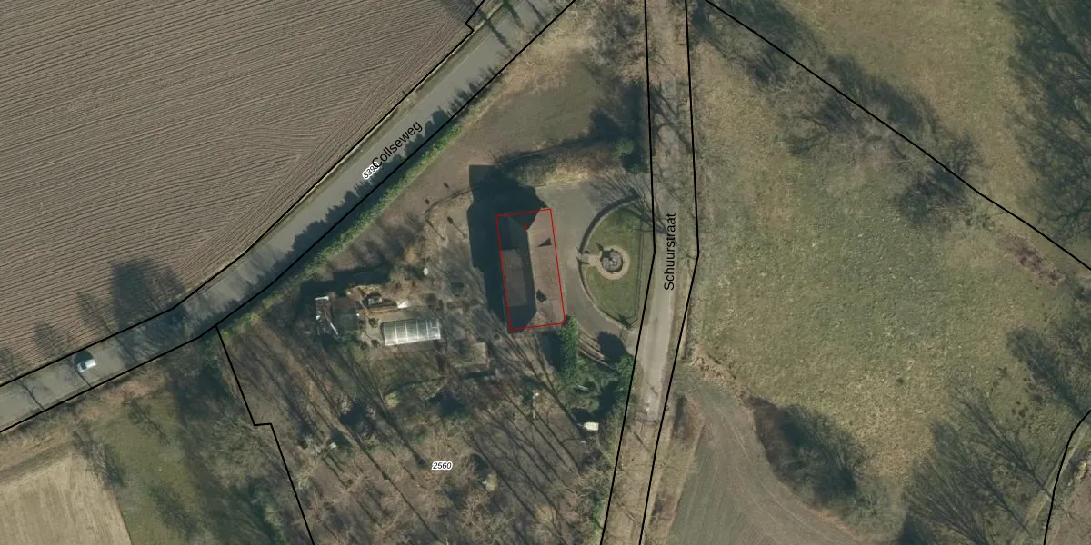 Schuurstraat 2 is gelegen op kadastraal perceel TGR00C2560. Deze kadastrale aanduiding is uniek en wordt gebruikt door het Kadaster om eigendomsrechten en andere zakelijke rechten vast te leggen. Het perceel maakt onderdeel uit van de kadastrale gemeente Tongelre.