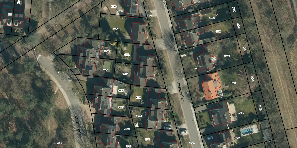Het perceel waarop Schweitzerlaan 17 staat heeft een oppervlakte van 444 m². Dit is een groot perceel. De perceeloppervlakte wordt geregistreerd door het Kadaster. Gedetailleerde informatie over de maten van dit perceel kunt u vinden in het rapport Kadastrale kaart met maatvoering van Schweitzerlaan 17.