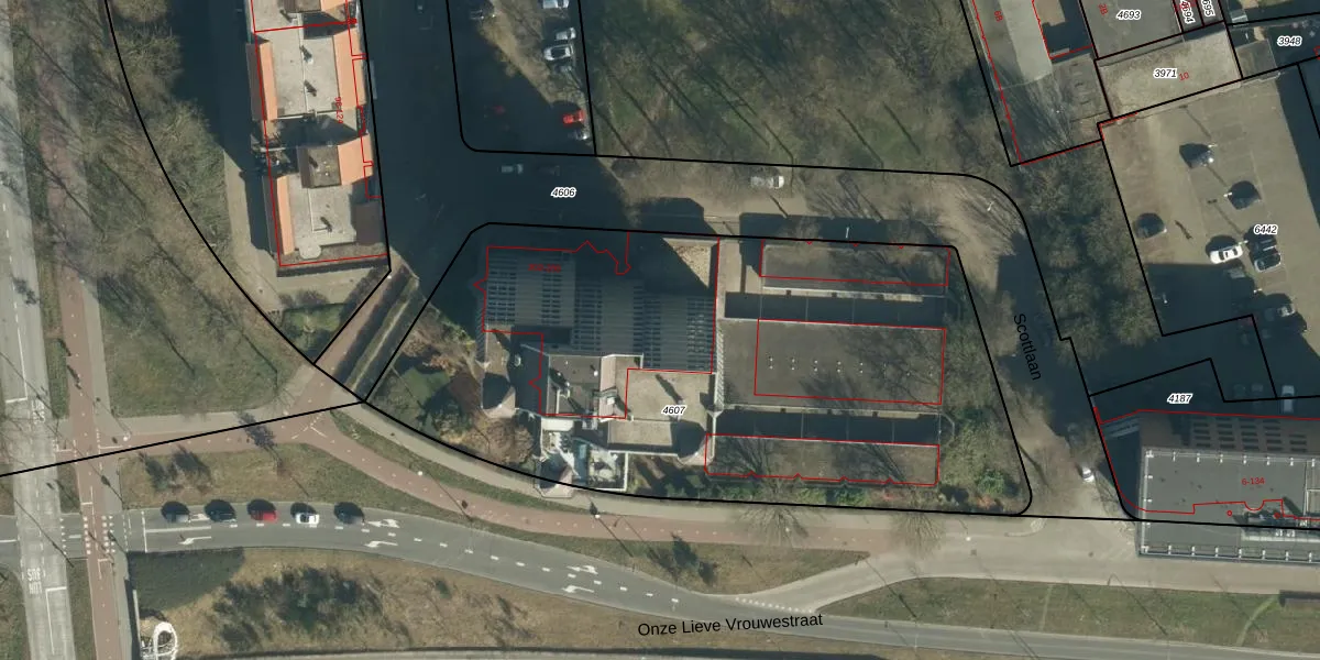 Het adres is gelegen op perceel 4607 in de sectie G en de kadastrale gemeente Woensel. De kadastrale aanduiding is aldus WSL01-G-4607. De oppervlakte van het perceel is 3428 m². Dat is groter dan gemiddeld in Woensel, waar de gemiddelde perceeloppervlakte op 1038,98 m² ligt. Het kleinste perceel in de kadastrale gemeente is 0 m² groot. De grootste perceeloppervlakte is 74,9 ha. Op het perceel zijn 40 adressen aanwezig. In de Basisregistratie Kadaster (BRK) werden de grenzen van het perceel geregistreerd op 31-05-2006.