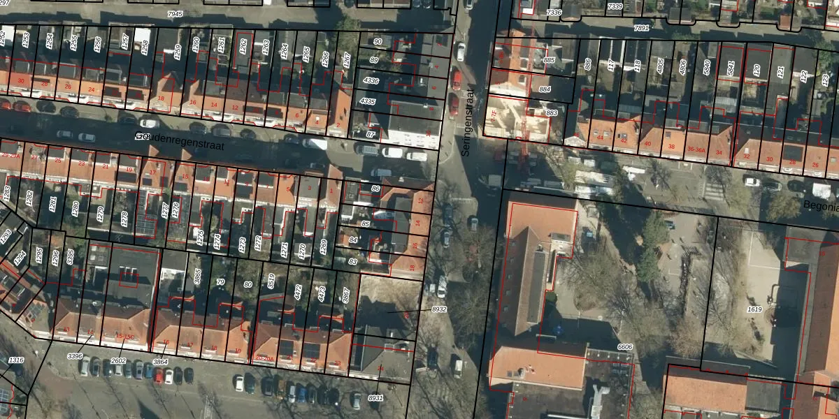 Gebruik de zoekbalk of klik op een perceel voor informatie over de adressen binnen dit perceel.