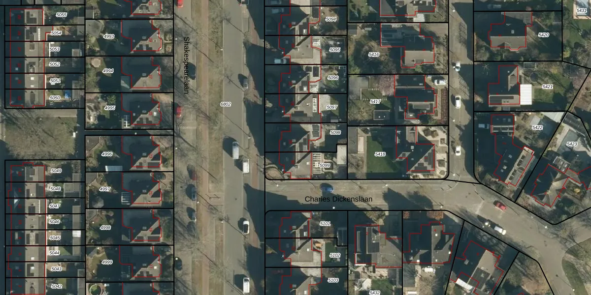 Gebruik de zoekbalk of klik op een perceel voor informatie over de adressen binnen dit perceel.