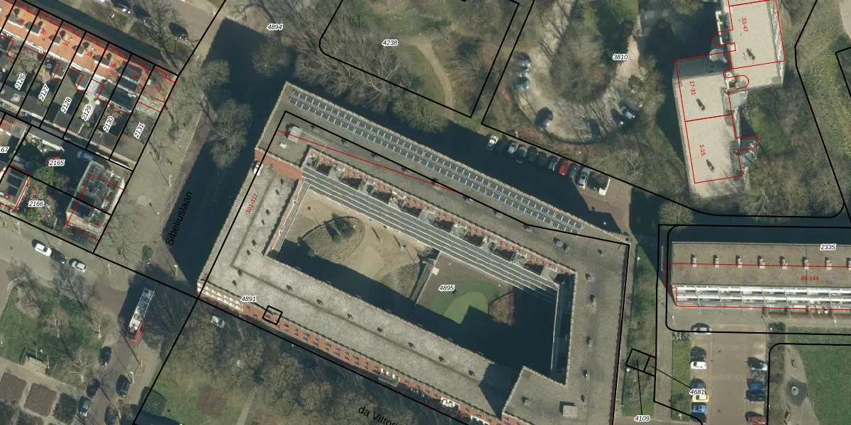 Het perceel waarop Sibeliuslaan 143 staat heeft een oppervlakte van 4805 m². Dit is een zeer groot perceel. De perceeloppervlakte wordt geregistreerd door het Kadaster. Gedetailleerde informatie over de maten van dit perceel kunt u vinden in het rapport Kadastrale kaart met maatvoering van Sibeliuslaan 143.