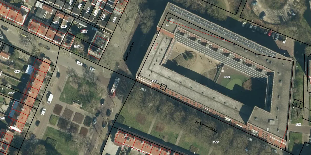 Het perceel waarop Sibeliuslaan 235 staat heeft een oppervlakte van 4805 m². Dit is een zeer groot perceel. De perceeloppervlakte wordt geregistreerd door het Kadaster. Gedetailleerde informatie over de maten van dit perceel kunt u vinden in het rapport Kadastrale kaart met maatvoering van Sibeliuslaan 235.