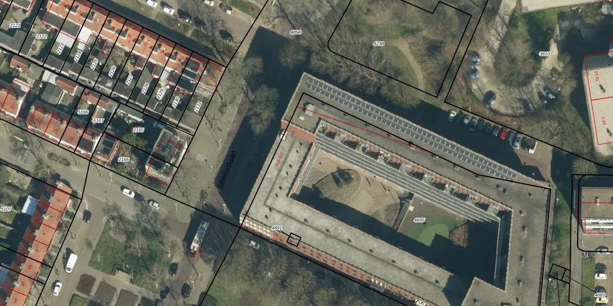 Het perceel waarop Sibeliuslaan 241 staat heeft een oppervlakte van 4805 m². Dit is een zeer groot perceel. De perceeloppervlakte wordt geregistreerd door het Kadaster. Gedetailleerde informatie over de maten van dit perceel kunt u vinden in het rapport Kadastrale kaart met maatvoering van Sibeliuslaan 241.