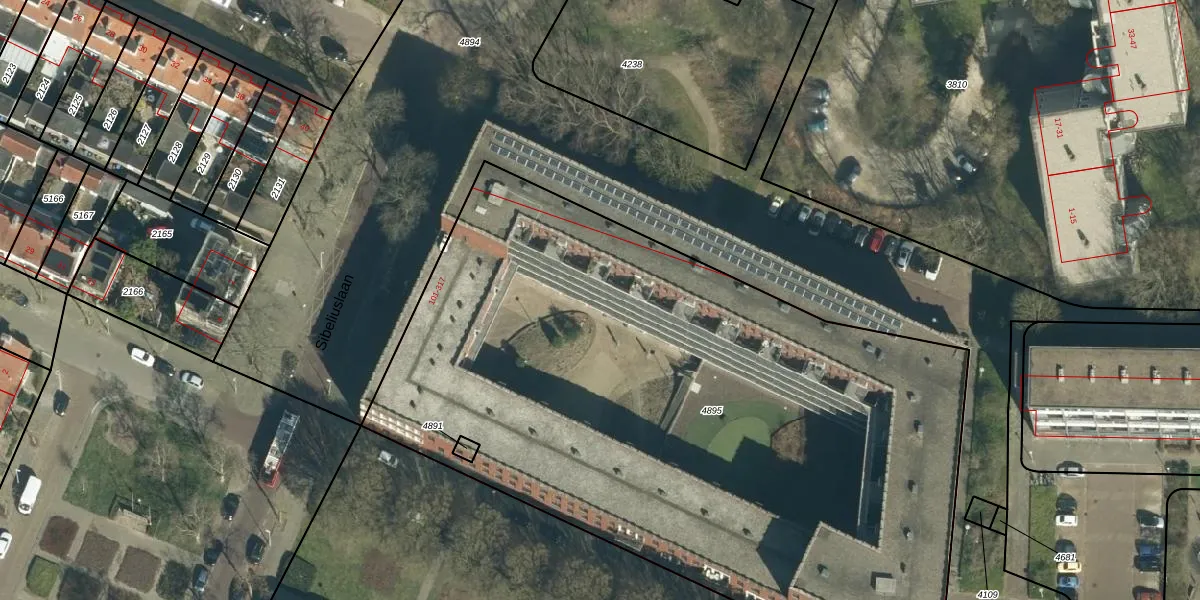 Het perceel waarop Sibeliuslaan 251 staat heeft een oppervlakte van 4805 m². Dit is een zeer groot perceel. De perceeloppervlakte wordt geregistreerd door het Kadaster. Gedetailleerde informatie over de maten van dit perceel kunt u vinden in het rapport Kadastrale kaart met maatvoering van Sibeliuslaan 251.