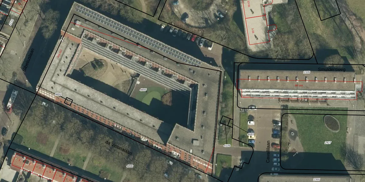 Het perceel waarop Sibeliuslaan 265 staat heeft een oppervlakte van 4805 m². Dit is een zeer groot perceel. De perceeloppervlakte wordt geregistreerd door het Kadaster. Gedetailleerde informatie over de maten van dit perceel kunt u vinden in het rapport Kadastrale kaart met maatvoering van Sibeliuslaan 265.