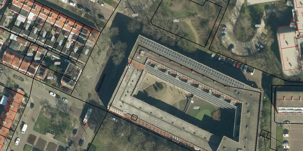 Het perceel waarop Sibeliuslaan 283 staat heeft een oppervlakte van 4805 m². Dit is een zeer groot perceel. De perceeloppervlakte wordt geregistreerd door het Kadaster. Gedetailleerde informatie over de maten van dit perceel kunt u vinden in het rapport Kadastrale kaart met maatvoering van Sibeliuslaan 283.