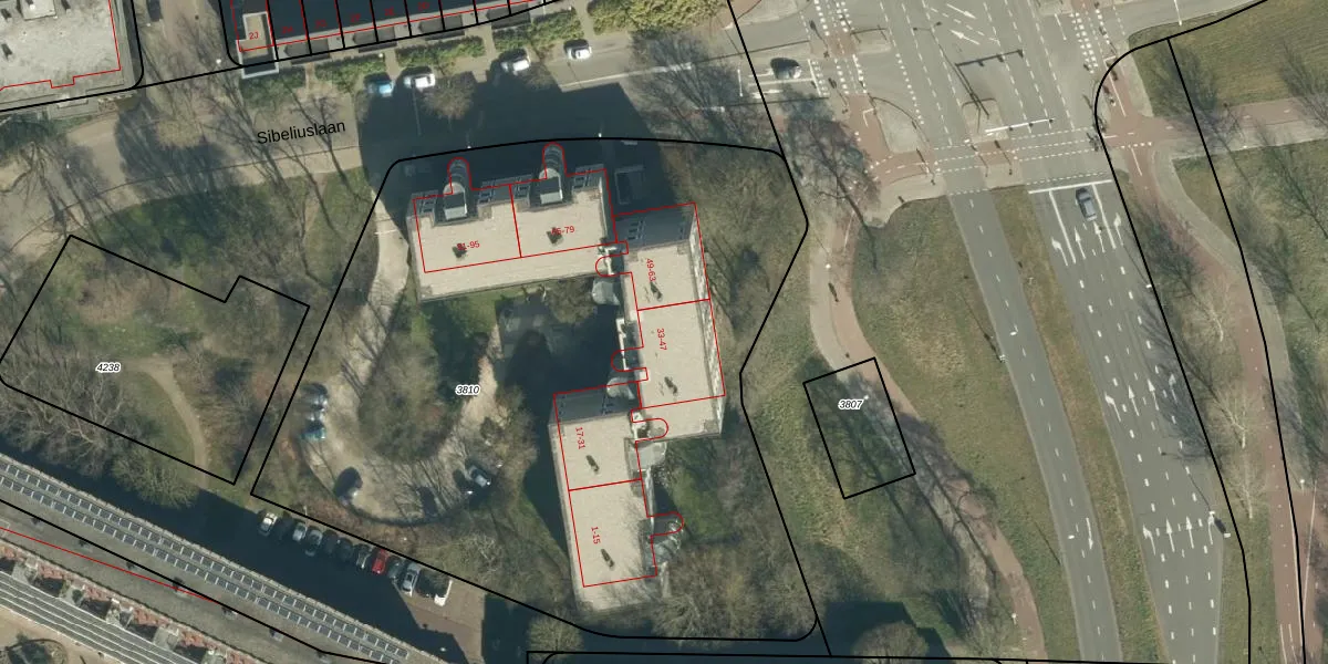 Het perceel waarop Sibeliuslaan 43 staat heeft een oppervlakte van 4740 m². Dit is een zeer groot perceel. De perceeloppervlakte wordt geregistreerd door het Kadaster. Gedetailleerde informatie over de maten van dit perceel kunt u vinden in het rapport Kadastrale kaart met maatvoering van Sibeliuslaan 43.