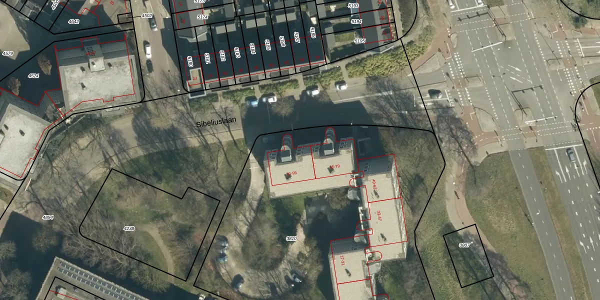Het perceel waarop Sibeliuslaan 81 staat heeft een oppervlakte van 4740 m². Dit is een zeer groot perceel. De perceeloppervlakte wordt geregistreerd door het Kadaster. Gedetailleerde informatie over de maten van dit perceel kunt u vinden in het rapport Kadastrale kaart met maatvoering van Sibeliuslaan 81.
