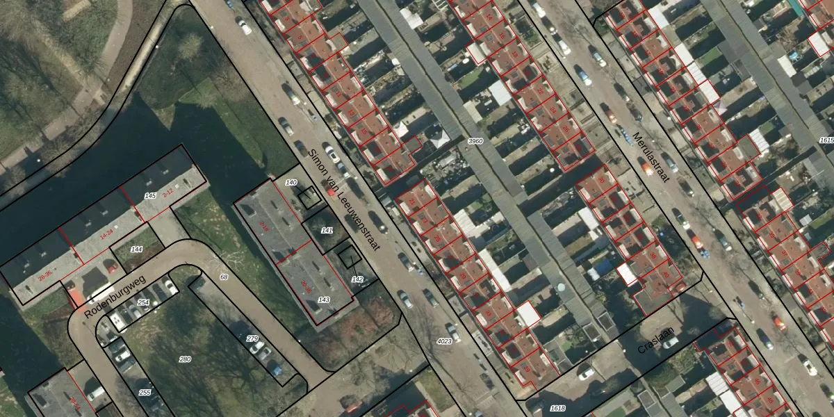 Simon van Leeuwenstraat 21 is gelegen op kadastraal perceel STR03C3960. Deze kadastrale aanduiding is uniek en wordt gebruikt door het Kadaster om eigendomsrechten en andere zakelijke rechten vast te leggen. Het perceel maakt onderdeel uit van de kadastrale gemeente Strijp.
