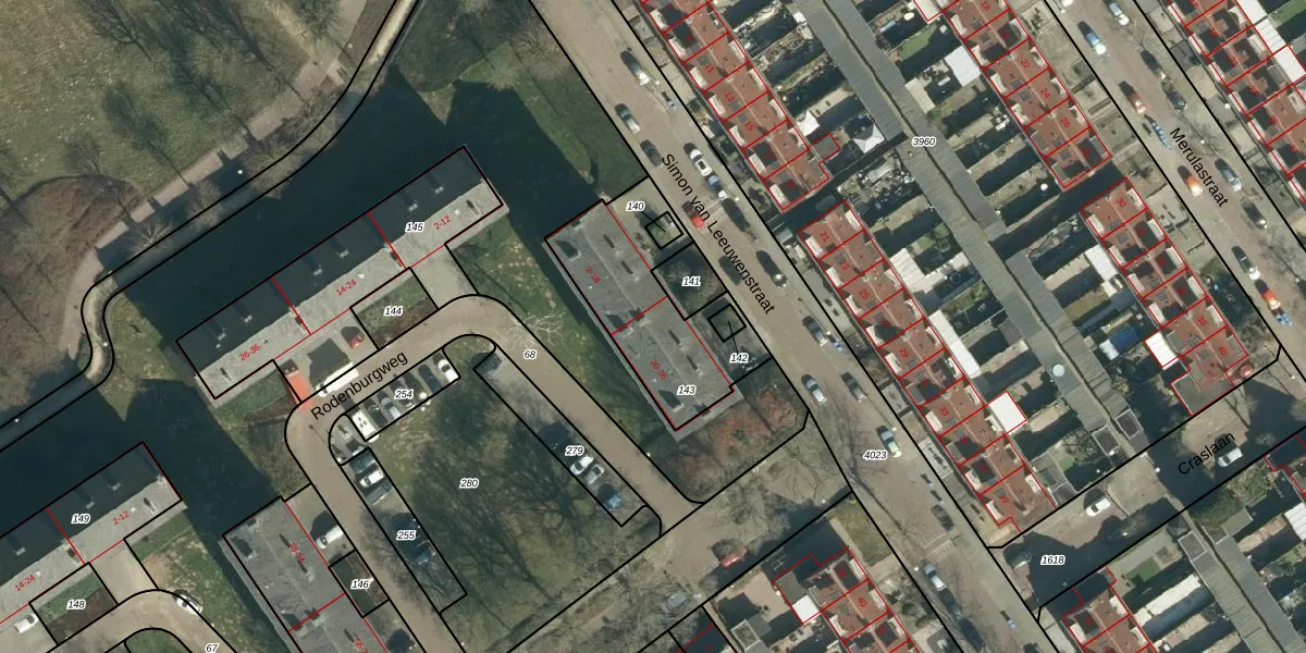 Simon van Leeuwenstraat 26 is gelegen op kadastraal perceel STR03E143. Deze kadastrale aanduiding is uniek en wordt gebruikt door het Kadaster om eigendomsrechten en andere zakelijke rechten vast te leggen. Het perceel maakt onderdeel uit van de kadastrale gemeente Strijp.