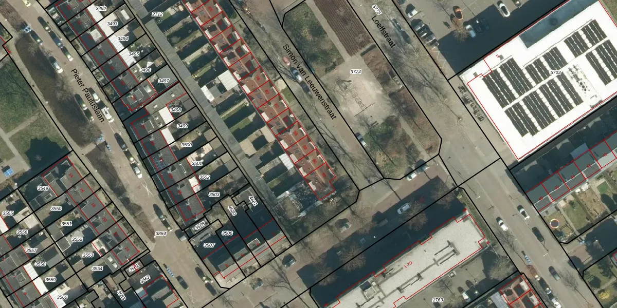 Simon van Leeuwenstraat 88 is gelegen op kadastraal perceel STR03C2712. Deze kadastrale aanduiding is uniek en wordt gebruikt door het Kadaster om eigendomsrechten en andere zakelijke rechten vast te leggen. Het perceel maakt onderdeel uit van de kadastrale gemeente Strijp.