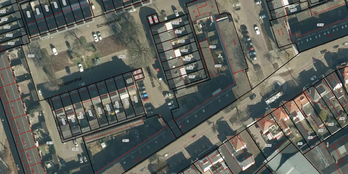 Gebruik de zoekbalk of klik op een perceel voor informatie over de adressen binnen dit perceel.