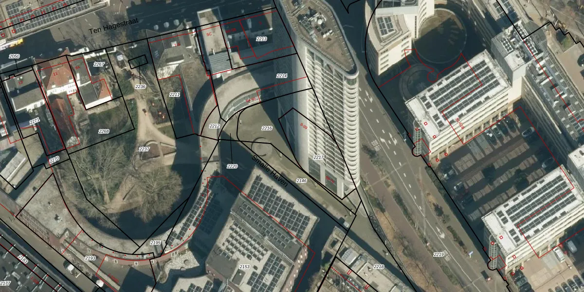 Het perceel waarop Smalle Haven 17 staat heeft een oppervlakte van 383 m². Dit is een groot perceel. De perceeloppervlakte wordt geregistreerd door het Kadaster. Gedetailleerde informatie over de maten van dit perceel kunt u vinden in het rapport Kadastrale kaart met maatvoering van Smalle Haven 17.