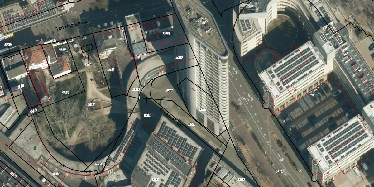 Het perceel waarop Smalle Haven 29 staat heeft een oppervlakte van 383 m². Dit is een groot perceel. De perceeloppervlakte wordt geregistreerd door het Kadaster. Gedetailleerde informatie over de maten van dit perceel kunt u vinden in het rapport Kadastrale kaart met maatvoering van Smalle Haven 29.
