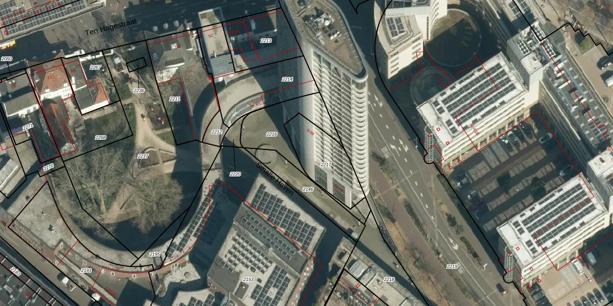 Het perceel waarop Smalle Haven 33 staat heeft een oppervlakte van 383 m². Dit is een groot perceel. De perceeloppervlakte wordt geregistreerd door het Kadaster. Gedetailleerde informatie over de maten van dit perceel kunt u vinden in het rapport Kadastrale kaart met maatvoering van Smalle Haven 33.