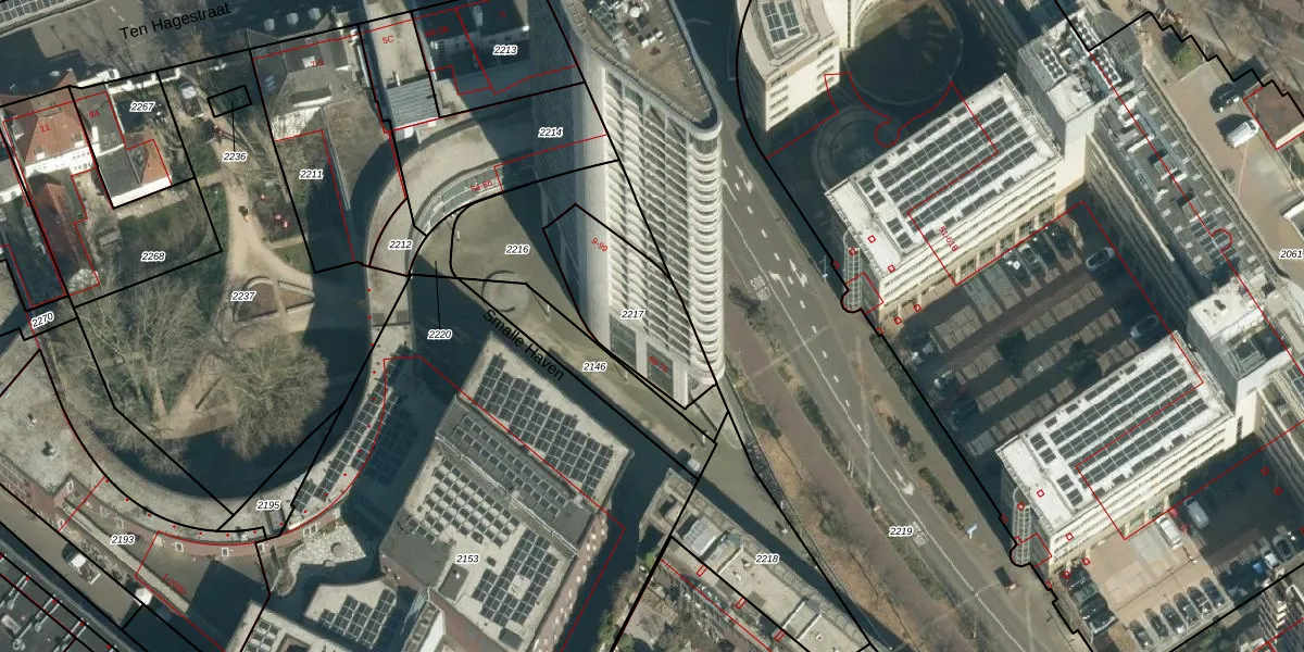 Het perceel waarop Smalle Haven 93 staat heeft een oppervlakte van 383 m². Dit is een groot perceel. De perceeloppervlakte wordt geregistreerd door het Kadaster. Gedetailleerde informatie over de maten van dit perceel kunt u vinden in het rapport Kadastrale kaart met maatvoering van Smalle Haven 93.