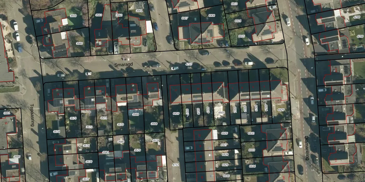 Het perceel waarop Smaragd 15 staat heeft een oppervlakte van 169 m². Dit is een middelgroot perceel. De perceeloppervlakte wordt geregistreerd door het Kadaster. Gedetailleerde informatie over de maten van dit perceel kunt u vinden in het rapport Kadastrale kaart met maatvoering van Smaragd 15.