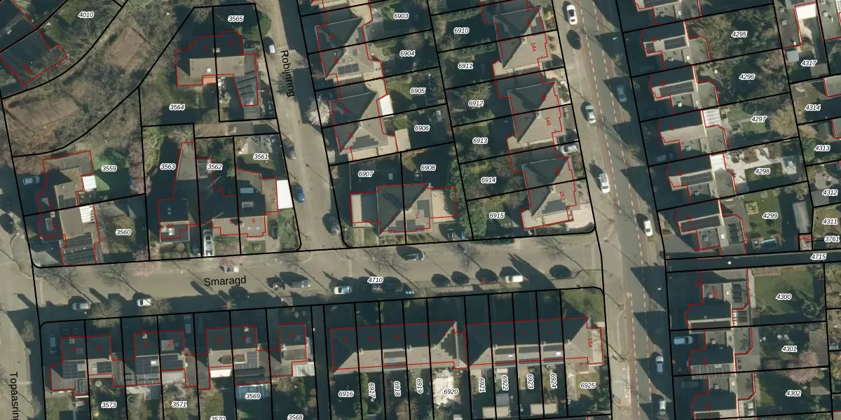 Het perceel waarop Smaragd 2 staat heeft een oppervlakte van 333 m². Dit is een groot perceel. De perceeloppervlakte wordt geregistreerd door het Kadaster. Gedetailleerde informatie over de maten van dit perceel kunt u vinden in het rapport Kadastrale kaart met maatvoering van Smaragd 2.