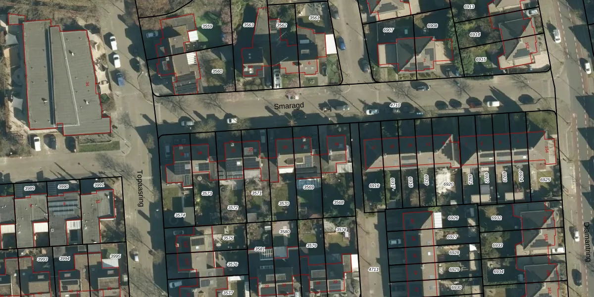 Het perceel waarop Smaragd 21 staat heeft een oppervlakte van 270 m². Dit is een middelgroot perceel. De perceeloppervlakte wordt geregistreerd door het Kadaster. Gedetailleerde informatie over de maten van dit perceel kunt u vinden in het rapport Kadastrale kaart met maatvoering van Smaragd 21.