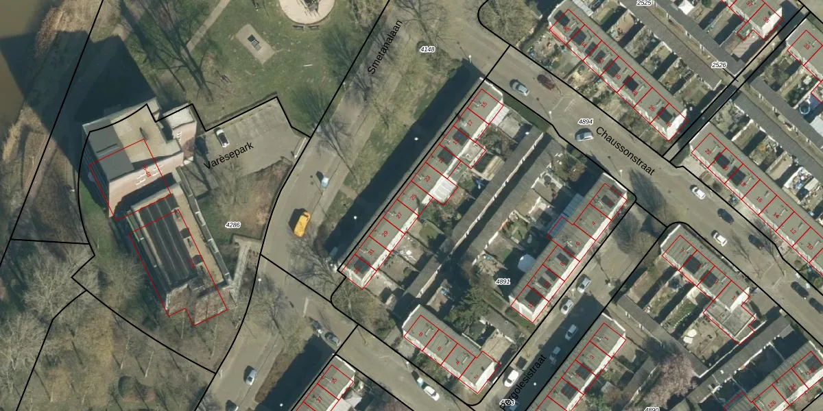 Het perceel waarop Smetanalaan 25 staat heeft een oppervlakte van 3103 m². Dit is een zeer groot perceel. De perceeloppervlakte wordt geregistreerd door het Kadaster. Gedetailleerde informatie over de maten van dit perceel kunt u vinden in het rapport Kadastrale kaart met maatvoering van Smetanalaan 25.