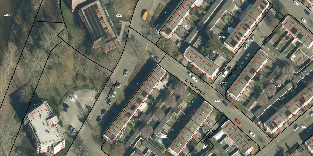 Het perceel waarop Smetanalaan 35 staat heeft een oppervlakte van 3245 m². Dit is een zeer groot perceel. De perceeloppervlakte wordt geregistreerd door het Kadaster. Gedetailleerde informatie over de maten van dit perceel kunt u vinden in het rapport Kadastrale kaart met maatvoering van Smetanalaan 35.