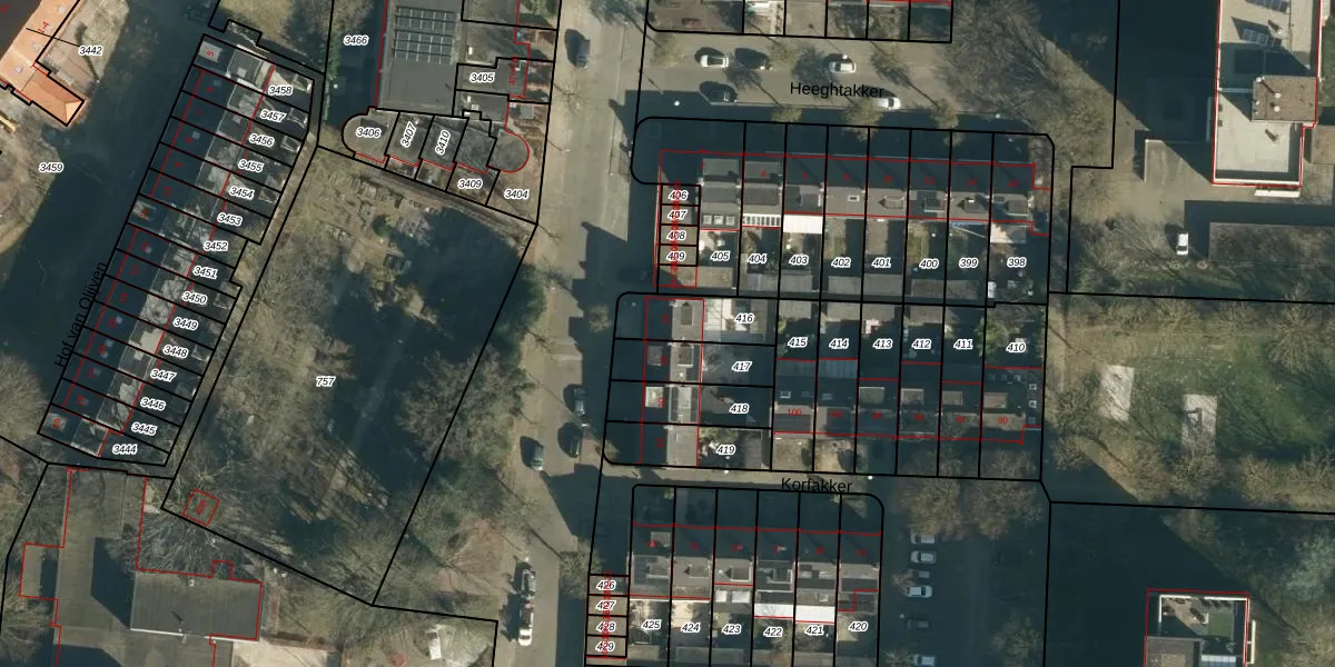 Gebruik de zoekbalk of klik op een perceel voor informatie over de adressen binnen dit perceel.