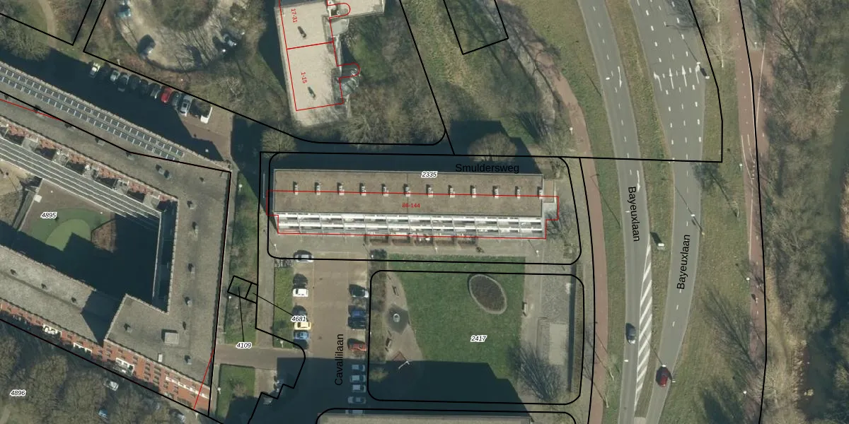 Smuldersweg 96 is gelegen op kadastraal perceel GTL01C2335. Deze kadastrale aanduiding is uniek en wordt gebruikt door het Kadaster om eigendomsrechten en andere zakelijke rechten vast te leggen. Het perceel maakt onderdeel uit van de kadastrale gemeente Gestel.